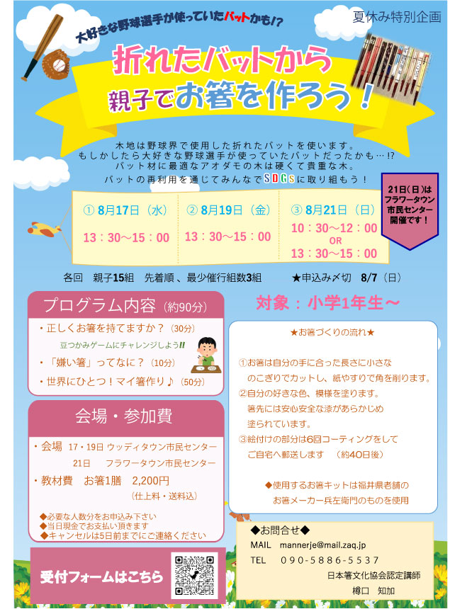 ◆第20回 箸検定「協会認定箸講師」の願書受付中!